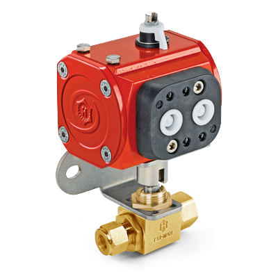 H6800 Series, 3 Piece Brass Ball Valve, 1/4” Female NPT x 1/4” Let-Lok® Tube Fitting, Double Acting Actuator