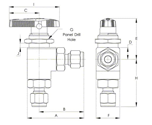 H6800 Series, 3 Piece Angled Pattern Brass Ball Valve, 6mm Let-Lok® Tube Fitting x 6mm Let-Lok® Tube Fitting