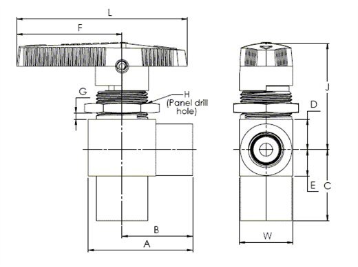 H800 Series, Compact One Piece, Angled Pattern SS Ball Valve, Medium Size, 1/4” Female NPT Thread x 1/4” Female NPT Thread