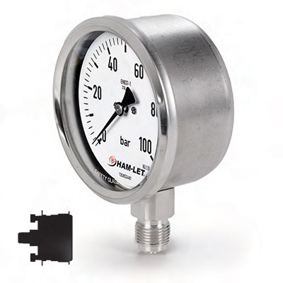 All Stainless Steel 50 mm Pressure Gauge, Crimped on Ring, Center Back mount 1/4” BSPP Thread Connection