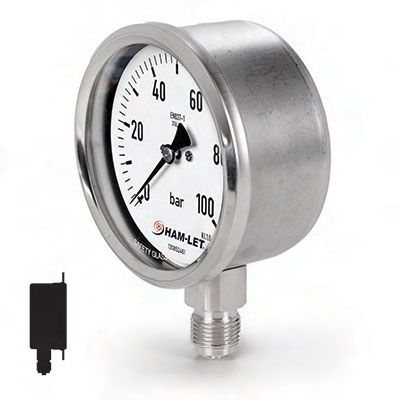 All Stainless Steel 50 mm Pressure Gauge, Crimped on Ring, Lower mount 1/8” BSPP Thread Connection