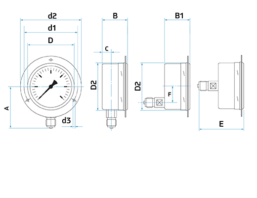 All Stainless Steel 40 mm Pressure Gauge, Bayonet Ring, Center Back mount 1/4” Face Seal Female Connection
