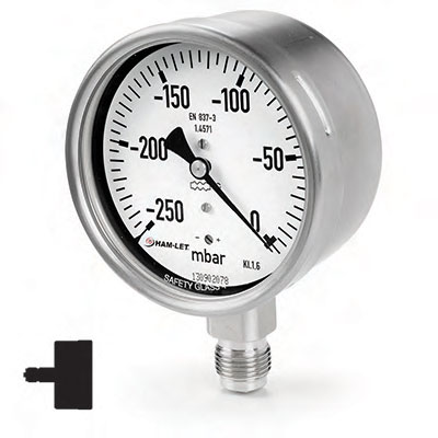 All Stainless Steel 100 mm Low Pressure Gauge, Capsule Type, Center Back mount 20x1.5 Metric Thread Connection