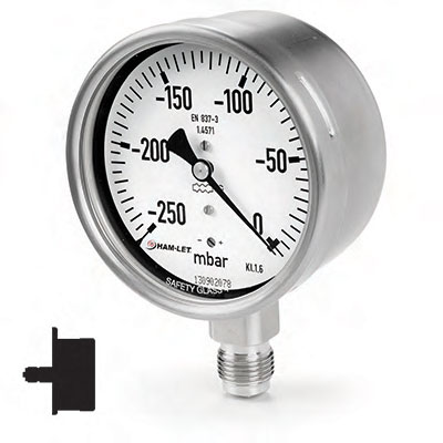 All Stainless Steel 100 mm Low Pressure Gauge, Capsule Type, Center Back mount 1/2” NPT Thread Connection