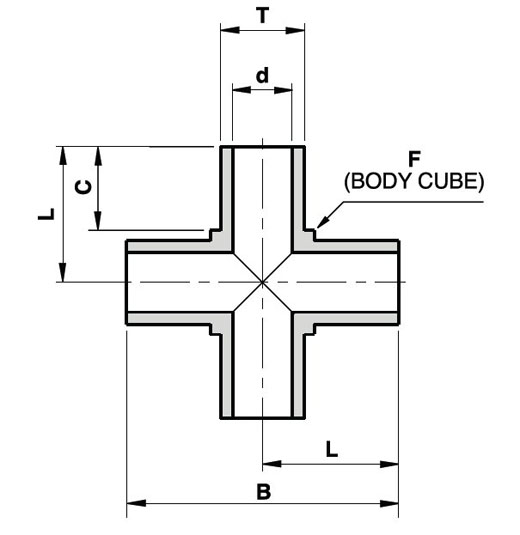 SS 316L Var or Vim/Var, Mini Cross, 1/2” O.D.