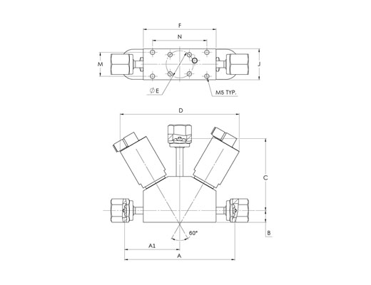 HMB Series, Multi-Port Monoblock Actuated Valve ,Swivel Female Face Seal 1/4”