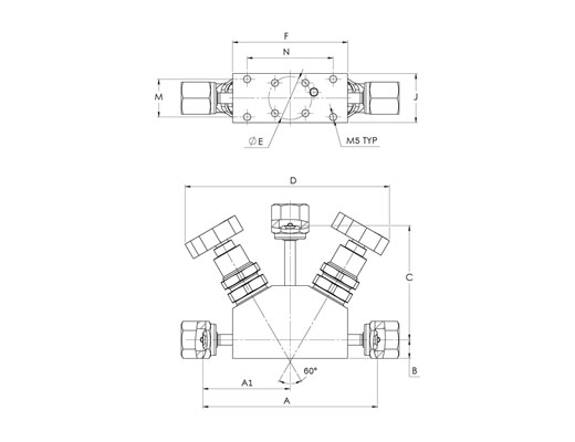 HMB14VKLQLQGF4, HMB Series, Multi-Port Monoblock Manual Valve ,Swivel Female Face Seal 1/4”