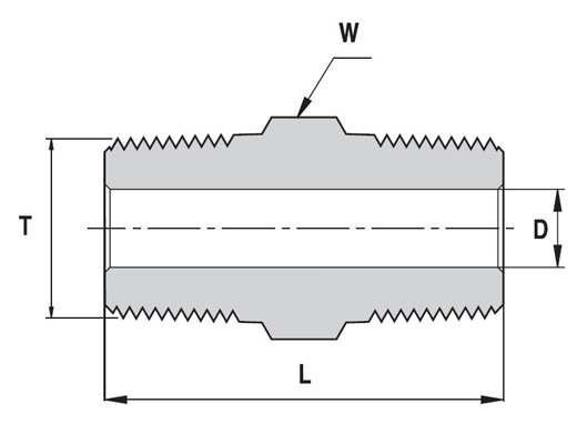122HB1/4, Brass Pipe Fitting, Hex Nipple, Male NPT Thread 1/4”