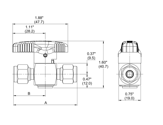 PLV400BL1/8PFS, Plug Valve, 1/4” Body Size ,Brass, 1/8” Let-Lok® Tube Fitting
