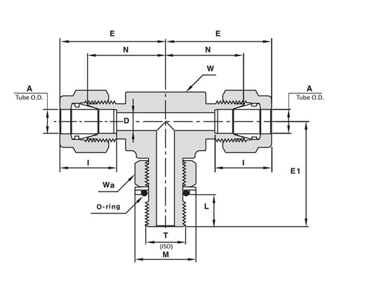 Stainless Steel 316 Positionable Male Branch Tee, One-Lok® Tube Fitting 1/4” x One-Lok® Tube Fitting 1/4” x Male ISO Parallel Thread 1/8”