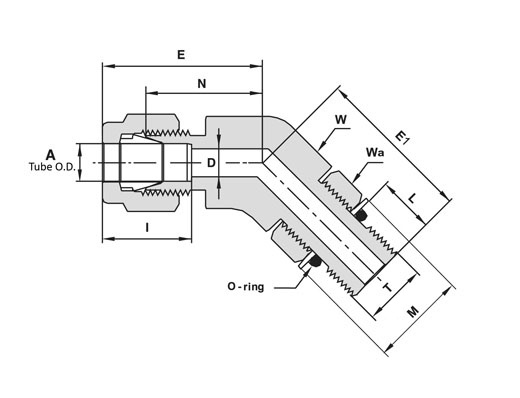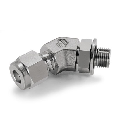 Stainless Steel 316 Positionable 45º Elbow, One-Lok® Tube Fitting x Male ISO Parallel Thread 1/8”