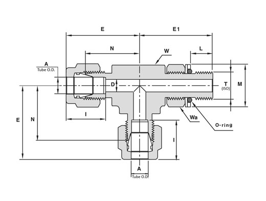Stainless Steel 316 Positionable Male Run Tee, One-Lok® Tube Fitting 1/4” x Male ISO Parallel Thread 1/4” x One-Lok® Tube Fitting 1/4”