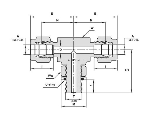 Stainless Steel 316 Positionable Male Branch Tee, Let-Lok® Tube Fitting 6MM x Let-Lok® Tube Fitting 6MM x Male ISO Parallel Thread 1/8”