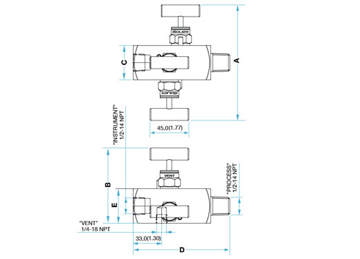 M32M004LSSVT, SS 316L Remote Mount 3 Way Manifold, 1/4” Let-Lok® Tube Fitting