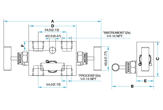 M30S104NSSVT, SS 316L Remote Mount 3 Way Manifold, 1/4” Female NPT Thread