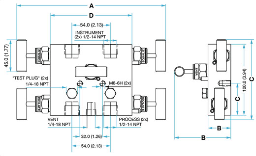 M53S106NSSVTP, SS 316L Remote Mount 5 Way Manifold, 3/8” Female NPT Thread