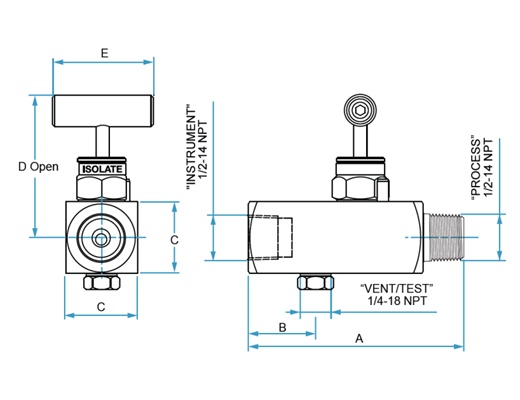 SS 316L Gauge Valve, 1/2” Male to Female - NPT Thread