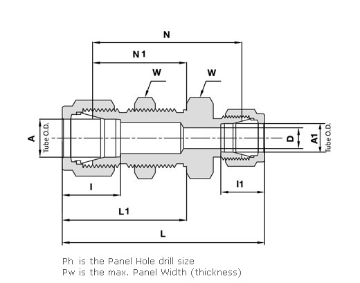 775HLSS3/8X1/4, St.St. 316 Bulkhead Union, One-Lok® Tube Fitting 3/8” x 1/4”