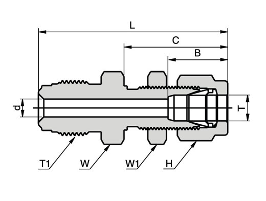 PSBUL1/4X1/4, SS 316L Male 1/4” to Short Bulkhead Let-Lok® 1/4” Connector