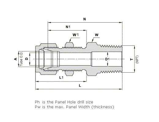 Brass Bulkhead Male Connector, Let-Lok® Tube Fitting 1/4” x Male NPT Thread 1/4”