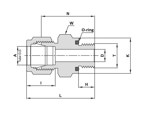 St.St. 316 Male Connector, One-Lok® Tube Fitting 3/8” x Male O-Seal UN Straight Thread 9/16”-18