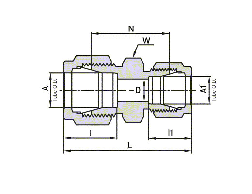 763HLSS1/4X1/16, St.St. 316 Union Reducer, One-Lok® Tube Fitting 1/4” x 1/16”