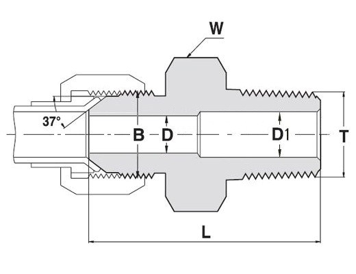 Stainless Steel 316 Connector, 37º Flare 1/4” x Male NPT 1/8”-27