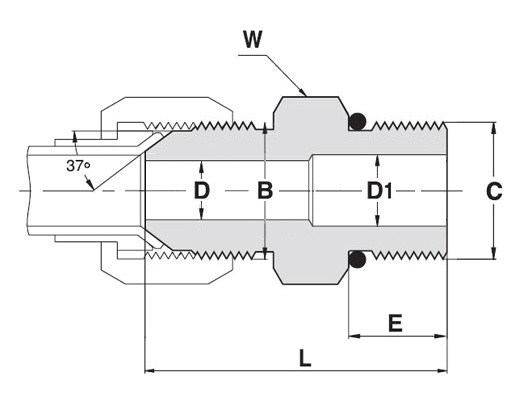 Stainless Steel 316 Connector, 37º Flare 3/8” x Male SAE 3/4”-16