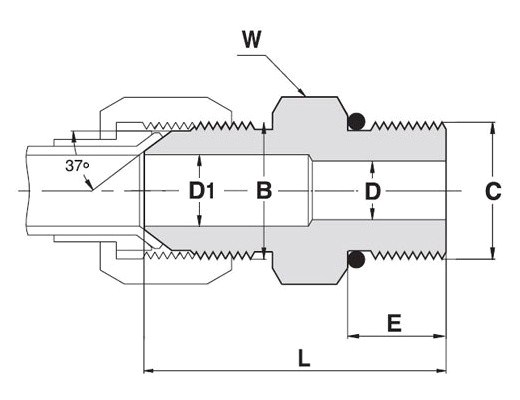 Stainless Steel 316 Connector, 37º Flare 5/8” x Male SAE 3/4”-16