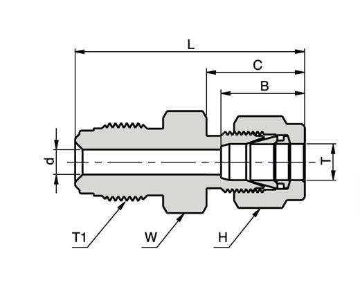 PUGL1/2X3/8H, SS 316L Male 1/2” to Let-Lok® 3/8” Connector