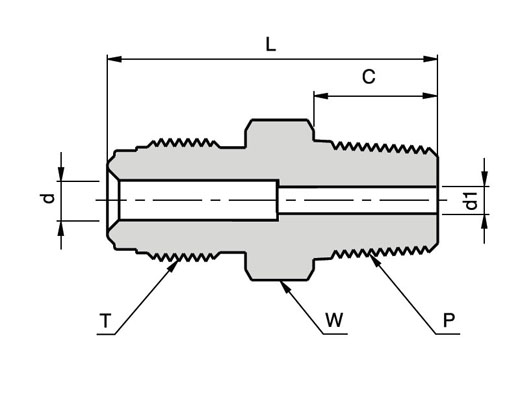 PCM1/4XR1/4EBSPT, SS 316L Male 1/4” to Male BSPT 1/4” Connector
