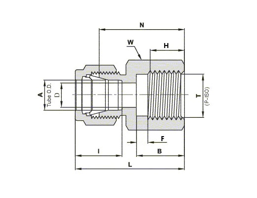 766LGSS5/16X1/2, St.St. 316 Female Connector, Let-Lok® Tube Fitting 5/16” x Female ISO Parallel Thread 1/2”