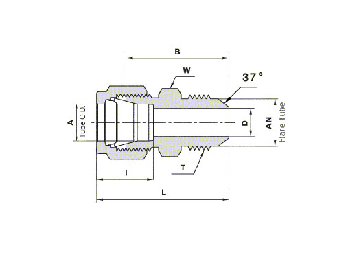 762LFLSS1/2X1/2, St.St. 316 Male Connector, Let-Lok® Tube Fitting 1/2” x Male 37º Flare 1/2”
