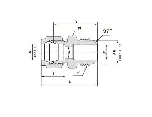 St.St. 316 Male Connector, Let-Lok® Tube Fitting 1/8” x Male 37º Flare 1/4”