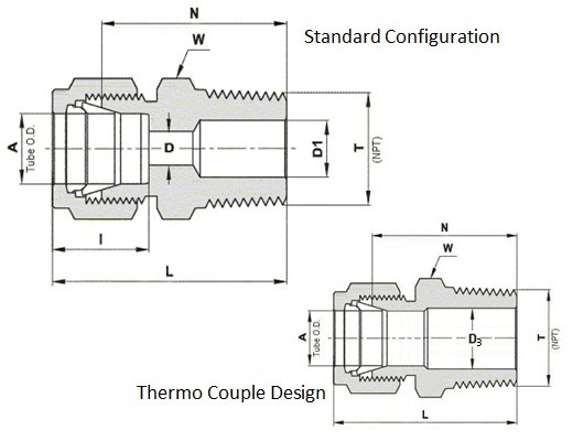 Brass Male Connector, Let-Lok® Tube Fitting 1/8” x Male NPT Thread 1/2”