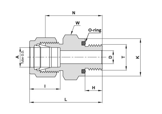 768LOB3/16X3/824, Brass Male Connector, Let-Lok® Tube Fitting 3/16” x Male O-Seal UN Straight Thread 3/8”-24