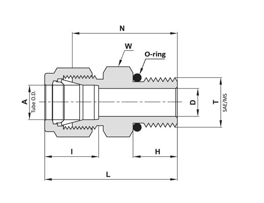 Brass Male Connector, Let-Lok® Tube Fitting 1/8” x Male SAE/MS Thread 5/16”-24