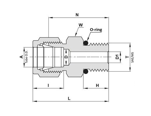St.St. 316 Male Connector, Let-Lok® Tube Fitting 1/4” x Male SAE/MS Thread 5/16”-24