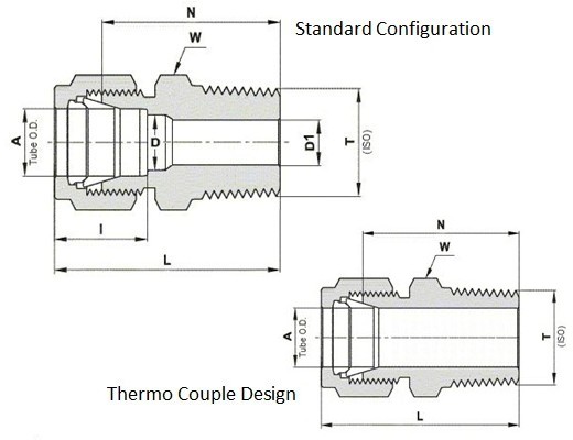 St.St. 316 Male Connector, Let-Lok® Tube Fitting 1/2” x Male ISO Tapered Thread 1/4”