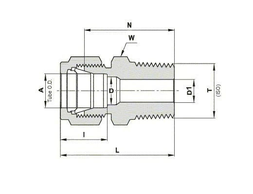 St.St. 316 Male Connector, Let-Lok® Tube Fitting 25mm x Male ISO Tapered Thread 3/4”