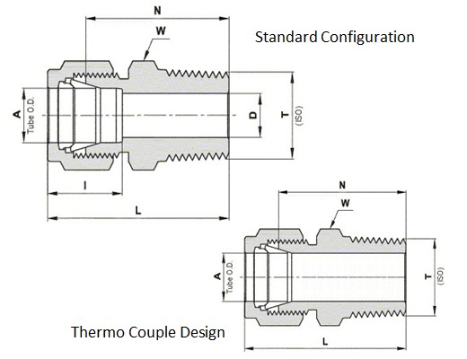 St.St. 316 Male Connector, Let-Lok® Tube Fitting 4mm x Male ISO Tapered Thread 1/8”