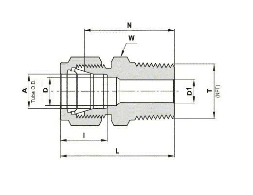 St.St. 316 Male Connector, Let-Lok® Tube Fitting 8mm x Male NPT Thread 1/8”