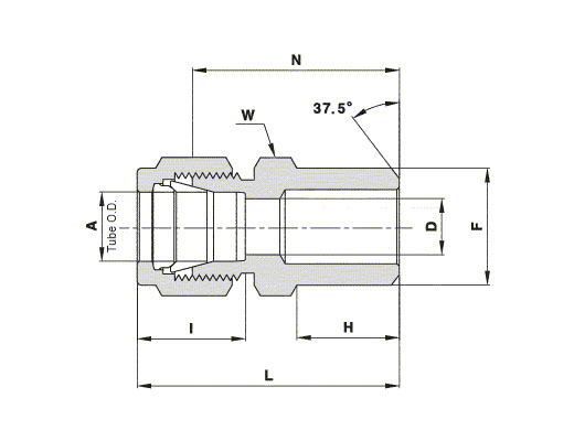 768LNB5/8X1/2, Brass Pipe Weld Connector, Let-Lok® Tube Fitting 5/8” x Male Pipe Weld 1/2”