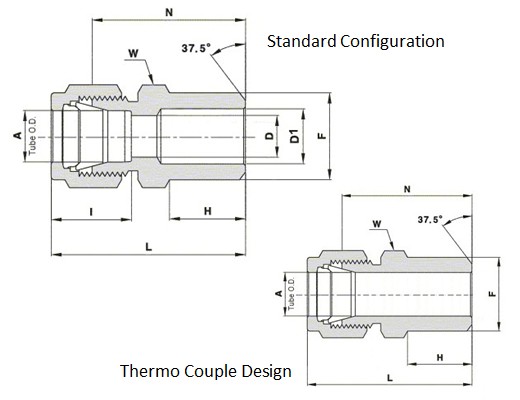 St.St. 316 Pipe Weld Connector, Let-Lok® Tube Fitting 5/16” x Male Pipe Weld 1/4”