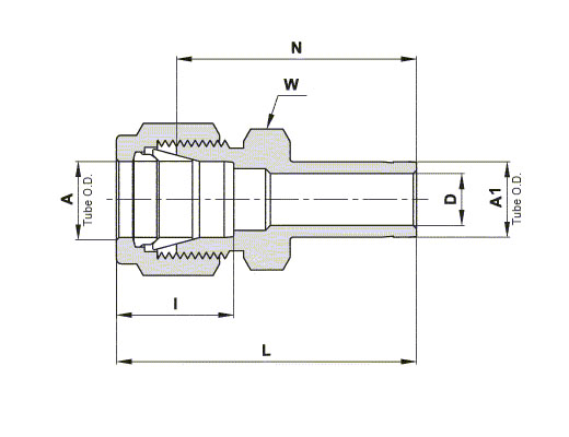 767LTM1/4X1/4, Alloy 400 Reducer, Let-Lok® Tube Fitting 1/4” x Tube Stub 1/4”
