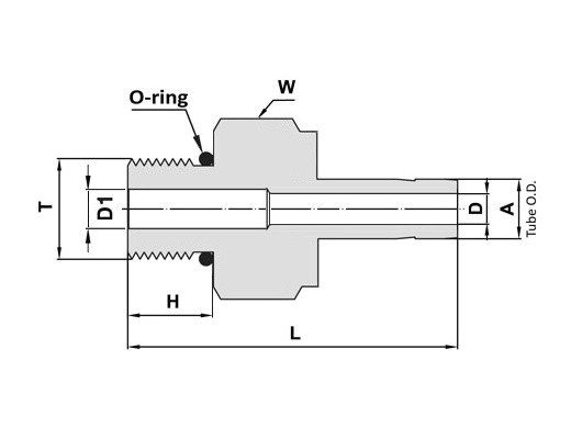 739LMOBSS1/4X7/1620, St.St. 316 Tube Adapter, Tube Stub 1/4” x Male SAE/MS Thread 7/16”-20