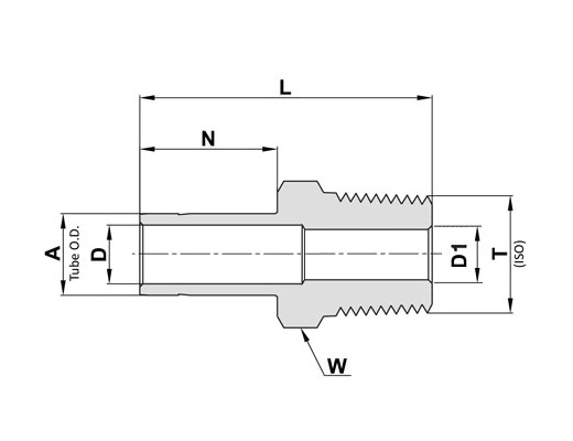 Brass Tube Adapter, Tube Stub 1/2” x Male ISO Tapered Thread 1/4”