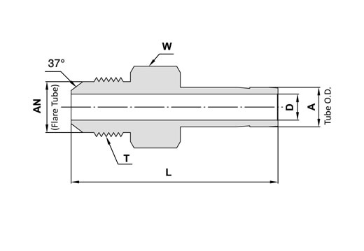 739LTFLSS1/4X1/4BD, St.St. 316 Tube Adapter, Tube Stub 1/4” x Male 37º Flare 1/4”