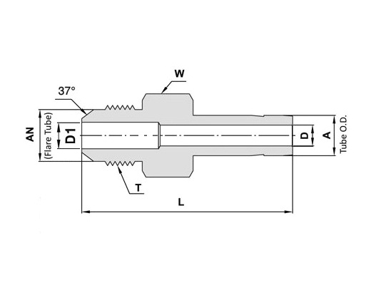 St.St. 316 Tube Adapter, Tube Stub 1” x Male 37º Flare 1”