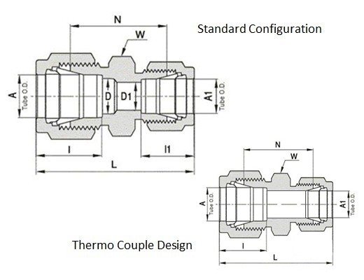 763LSS3/16X1/8, St.St. 316 Union Reducer, Let-Lok® Tube Fitting 3/16” x 1/8”